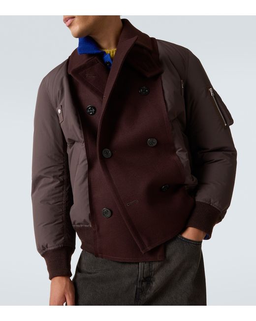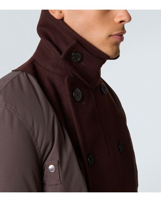 Material: 100% wool. Care instructions: specialist clean. Made in China. Designer color name: Brown. Item color: brown. Material II: 100% polyester. Trim: 53% acrylic, 36% wool, 10% polyester, 1% polyurethane. Closure: double-breasted (six buttons). Pockets: snap-buttoned pockets, sleeve pocket. Wool.