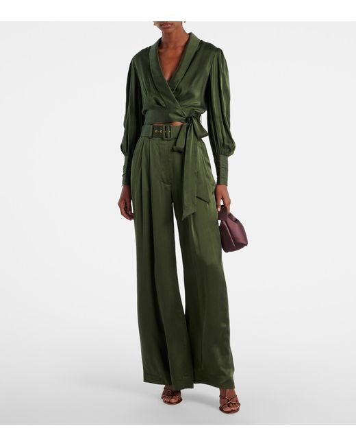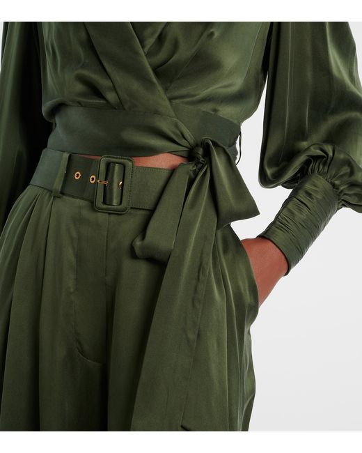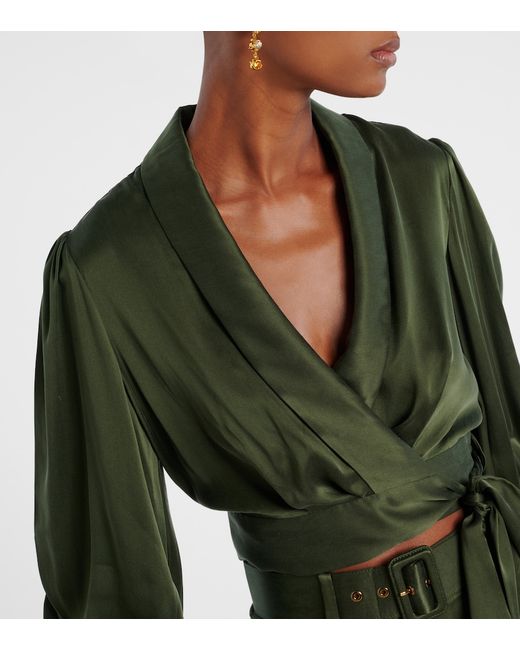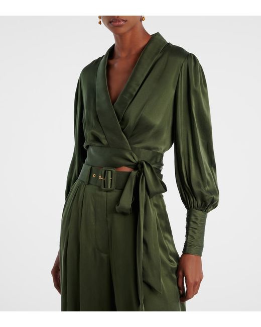 Material: 100% silk. Care instructions: dry clean. Made in China. Designer color name: Dark Green. Item color: green. Closure: wrap-front. Collar: V-neck.