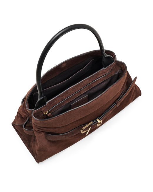 The Dakota satchel from Marc Jacobs is crafted of suede and features a buckle belt. Top handle Protective metal feet Interior: one slip pocket, one zip pocket, and two compartments Magnetic closure 100% suede Lining: 100% cotton Spot clean Imported SIZE About 15.75"W x 10.5"W x 6.25"H Shoulder strap: about 9.75" drop. Handbags - Marc Jacobs > Marc Jacobs > Saks Fifth Avenue. Marc Jacobs. Color: Copper.