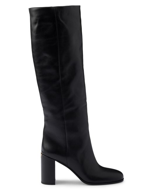 Leather lining Boot leg: 41 cm / 16.1'' Leather and rubber soles with hot-stamped logo Leather-covered 85 mm / 3.3'' heels with enameled metal triangle logo Imported 100% Calf Leather. Lsd Rtw - Prada Rtw > Prada > Saks Fifth Avenue. Prada. Color: Black. Size: 6.5.