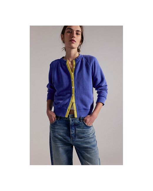 Our favorite graphic cardi gets dialed down to the perfect solid silhouette. Sweet floral buttons and the perfect relaxed fit make this cardi-inspired sweatshirt a must-add to your collection. * Cotton terry fabrication * Crew neckline * Button-front closure * Raglan sleeves * Colorblocked design Junior Solid Sweatshirt Cardi at Free People in Mazarine Combo, Size: XS