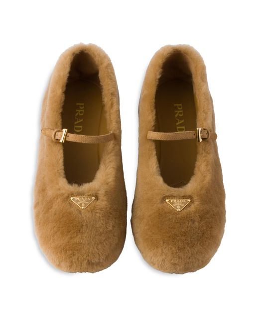 Upper with leather strap and logo-engraved buckle Enameled metal triangle logo Monoblock rubber sole, 5 mm / 0.1'', with hot-stamped logo Fur type: 100% Dyed sheep Fur origin: Portugal Imported. Lsd Rtw - Prada Rtw > Prada > Saks Fifth Avenue. Prada. Color: Brown. Size: 7.