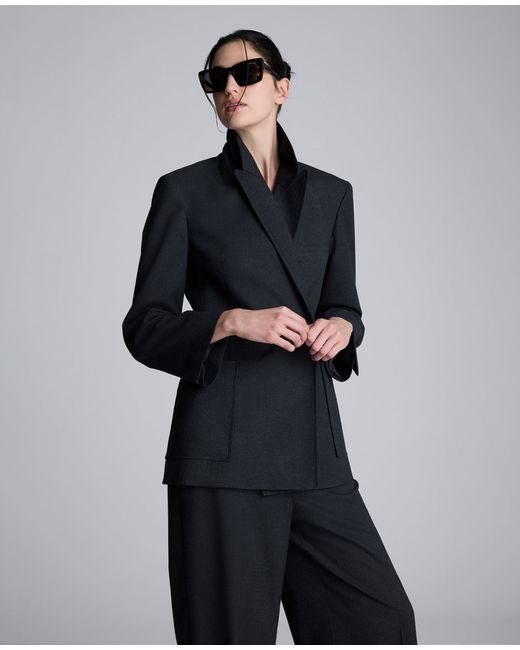 WHAT’S IN IT FOR YOU? Flannel double breasted jacket Peak lapel Shoulder padding for added structure Side patch pockets Fully lined 69% polyester,29% viscose, 2% elastane Dry clean Imported Model Specs: Height 5'10", Bust 29.5", Waist 23", Hips 35" | Kenneth Cole | Flannel Double Breasted Jacket in CHAR COLE, Size: XS