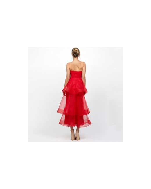 Strapless Tiered Ruffle High-Low Midi Dress