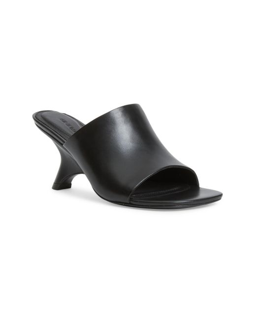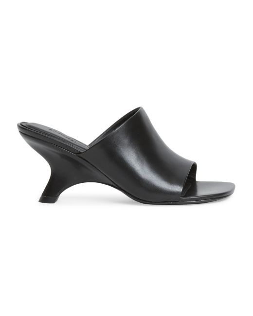 The Shadow mule sandals from SIMKHAI are crafted of smooth leather and highlight an open-toe silhouette, modernized with sculptural heels. Open toe Slips on Leather upper Leather lining Leather sole Imported SIZE Sculptural heel: about 3" (75mm). Women's Shoes - Workshop Shoes > Simkhai > Saks Fifth Avenue. SIMKHAI. Color: Black. Size: 10.