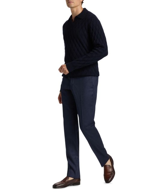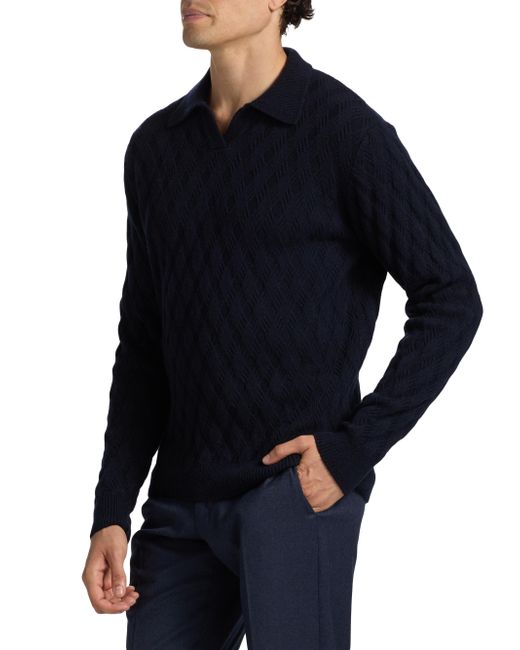 Saks Fifth Avenue' polo sweater is crafted of a soft wool blend in a diamond intarsia knit. Johnny collar Long sleeves Pulls over 90% wool/10% cashmere Dry clean Made in Italy SIZE & FIT Model measurements: 6'2" tall, 40" chest, 31" waist Model is wearing a US size Medium. Mens Pvt Brands - Sfamc Sportswear > Saks Fifth Avenue > Saks Fifth Avenue. Saks Fifth Avenue. Color: Navy. Size: Small.