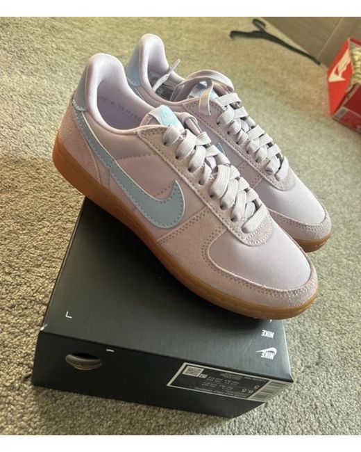New with box - no lid Pet and smoke free home The NIKE Field General Women's Purple Trainers in size 4 are a stylish and versatile choice for women. Made with a leather and textile upper and a synthetic sole, these trainers offer both comfort and durability. The classic court style and purple colour give them a trendy and sporty look, perfect for everyday wear. With the trusted NIKE brand, these trainers are sure to provide both style and performance for any woman on the go.