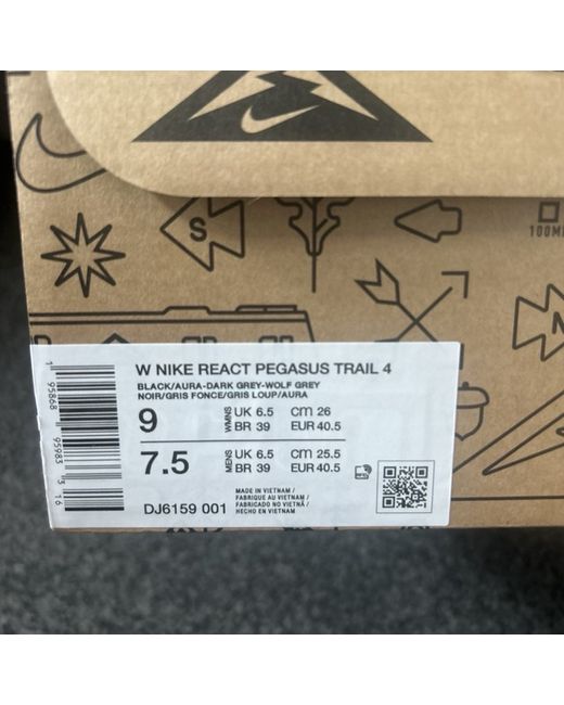 Women's Gray React Pegasus Trail 4 W Black Grey Trainers UK 6.5 Brand New