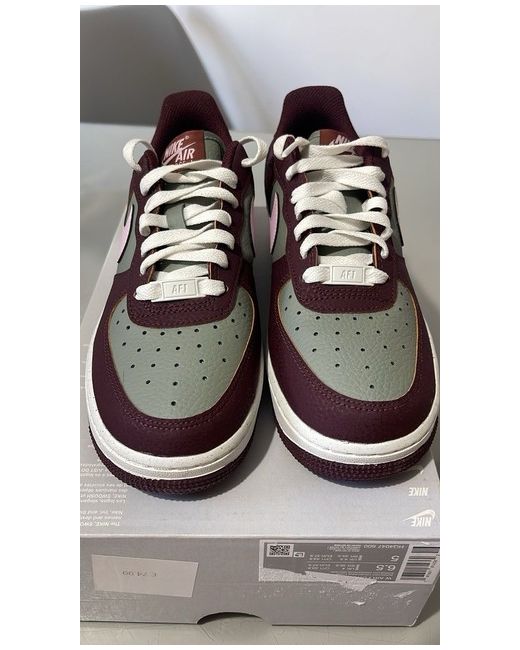 The Nike Air Force 1 Women's Size 4 is a stylish and comfortable trainer perfect for casual occasions. Featuring a low top design with a lace-up closure, these burgundy sneakers are made with leather uppers and a rubber outsole for durability. The iconic Nike logo adds a touch of accent to the classic Air Force theme, making it a fashionable choice for women looking for a versatile spring shoe. Brand new in box , top of the lid on the box is missing .