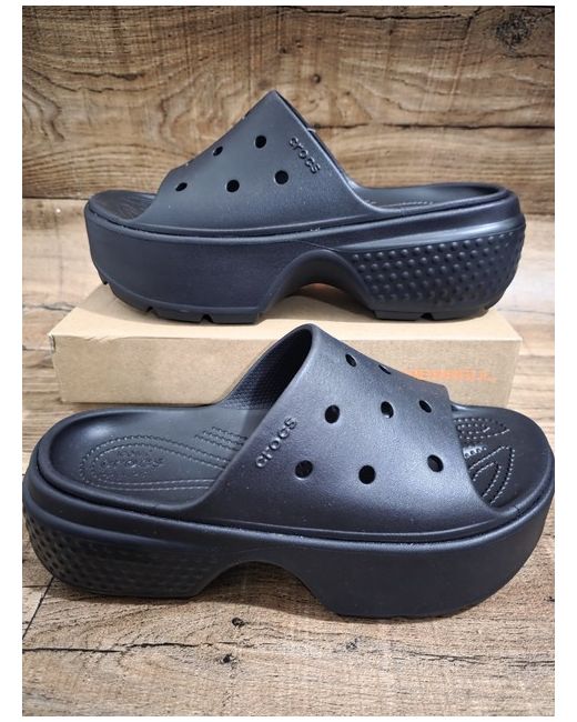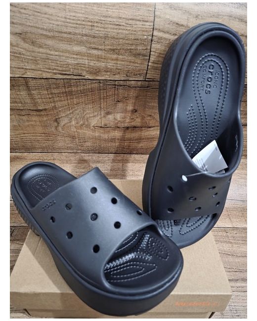 Absolutely Brilliant Crocs Platform Slide Brand New With Tags in Women's Size 9. Completely Unworn. Pls Check all pictures to appreciate. The Crocs Stomp Slide Clog Black Iris Slip On Platform Sandal in UK size 9 is a stylish and comfortable option for women looking for a slip-on sandal. Featuring a black synthetic upper material with a slip-on closure, this platform sandal offers a trendy yet practical design suitable for various occasions. The Crocs brand ensures quality and durability, making this sandal a reliable choice for women in need of a classic black sandal in size 9.