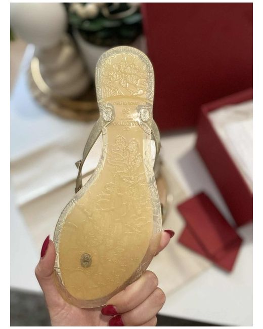 These Valentino sandals in UK size 3 are perfect for a casual summer occasion with a clear colour and a flat heel style, they are designed for women and feature the iconic Valentino Rockstud model. Made in Italy, these sandals from the Valentino Garavani product line are a stylish choice for any woman looking to add a touch of luxury to her outfit.