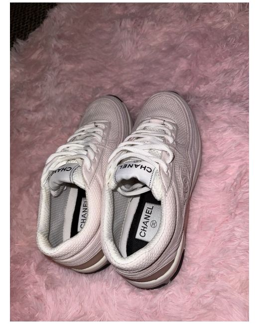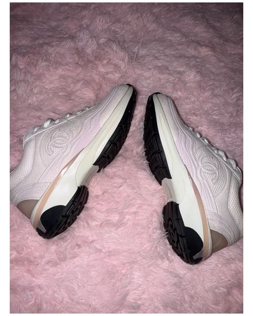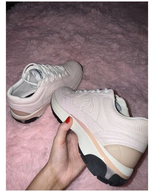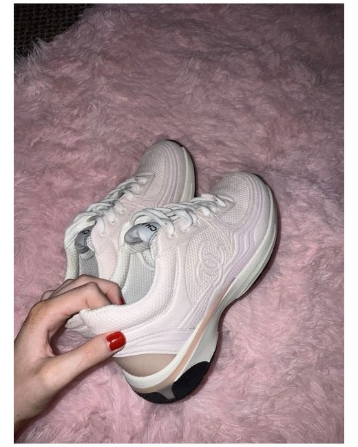 The product is a pair of pink Chanel trainers in UK size 4 (US size 6.5). These lace-up sneakers are made of suede, with the iconic Chanel CC model and style. Designed for casual occasions, they are perfect for the spring season and are made in Italy by the luxury brand Chanel. These standard width trainers are a stylish addition to any woman's wardrobe, combining comfort and fashion effortlessly.
