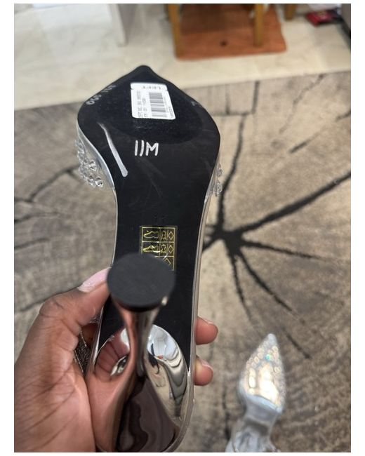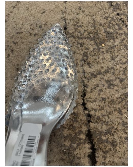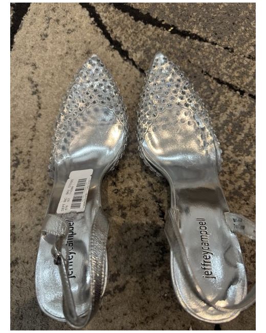 The Jeffrey Campbell Translucent Glitter High-heel Shoes are a stylish and eye-catching pair of heels designed for women. With a cut-out design and silver colour, these shoes feature accents such as glittery stone detailing, a strap and buckle closure. The enclosed pointed front and flare heel make them a fashionable choice for any outfit, while the high heel height of 8cm adds a touch of glamour and elegance. These Jeffrey Campbell shoes are a must-have for any fashion-forward lady looking to make a statement. Heel height - 8cm Uk Size 8