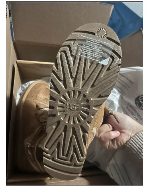 A pair of UGG Lowmel trainers in Chestnut, size 4 (UK, 6 (US), 37 (EU). The trainers are perfect for casual occasions during the winter season. They come with a box and are standard width sneakers from the UGG Classic product line. The UGG brand is known for its high-quality and stylish footwear, making these trainers a luxurious addition to any woman's shoe collection.
