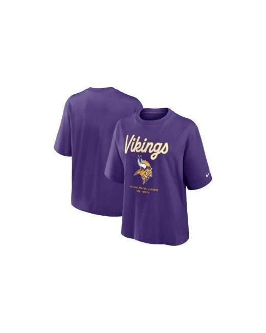 Head to the stadium or a casual outing in trendy Minnesota Vikings apparel with this by Nike. Its relaxed, boxy fit provides a comfortable and flattering look. The midweight jersey fabric feels soft against your skin, making this Minnesota Vikings T-shirt ideal for all-day wear.