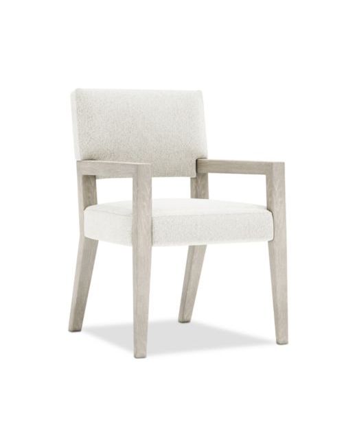 Straight lines and angles craft a modern linear style for the Tempo arm chair. Wirebrushed oak in Larza finish takes a straight approach for the arms and front legs, while the back legs angle away for a balanced look. The back interlocks into the wood frame while the deep seat provides lovely comfort.