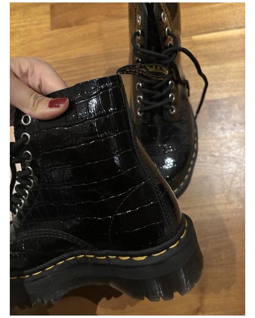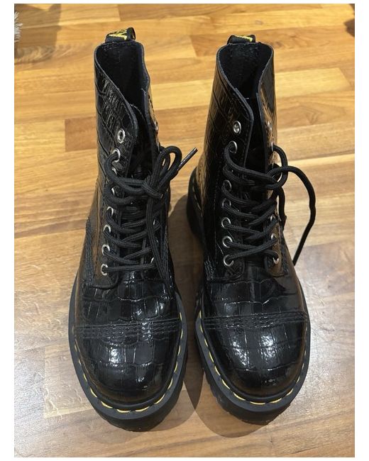 Dr. Martens Sinclair Black Leather Platform Boots UK5 #goth #punk black leather, platform boots, chunky sole, combat style, gothic footwear, punk boots, lace-up, sturdy, urban aesthetic, edgy
