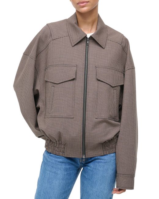 The Eugene jacket from Staud features a houndstooth design and is styled with chest flap pockets and an elasticized waist. Spread collar Long sleeves, snap cuffs Chest flap pockets Front zip closure 62% polyester/26% viscose/6% wool/6% spandex Lining: 100% polyester Dry clean Imported SIZE & FIT About 24" from shoulder to hem Model measurements: 5'10" tall Model is wearing a US size Small. Contemporary Sportswear - Contemporary Collections > Staud > Saks Fifth Avenue. Staud. Color: Houndstooth. Size: XS.