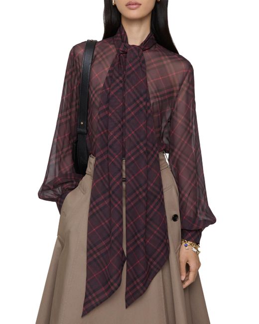 Crafted of semi-sheer silk in Italy, Burberry's Lina blouse frames the silhouette with long blouson sleeves. This checked style is designed with a tieneck and button cuffs. Tie-eck Long blouson sleeves, button cuffs 100% silk Dry clean Made in Italy SIZE & FIT Model measurements: 5'10" tall Model is wearing a US size 4 ABOUT THE BRAND Founded in 1856 by 21-year-old Thomas Burberry, the brand set out with a mission to stylishly protect against British weather-and Burberry's iconic trench coat was born. In the 1920s, its renowned check pattern was introduced as the coat's lining. Today, under Creative Director Daniel Lee, the heritage brand continues to evolve and create timelessly classic men's, women's and kids' pieces, along with beauty. Advanced Designer - Burberry > Burberry > Saks Fifth Avenue. Burberry. Color: Rubus Ip Check. Size: 0.