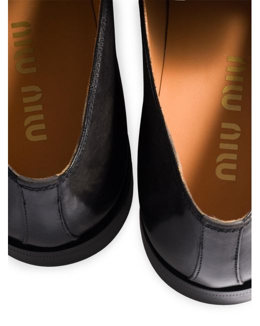 Apron with embossed logo Heel height: 20mm / 0.7'' Leather lining Leather insole Leather and rubber sole Screen-printed logo on the insole Imported 100% Calf leather. Lsd Handbags - Miu Miu > Miu Miu > Saks Fifth Avenue. Miu Miu. Color: Black. Size: 6.