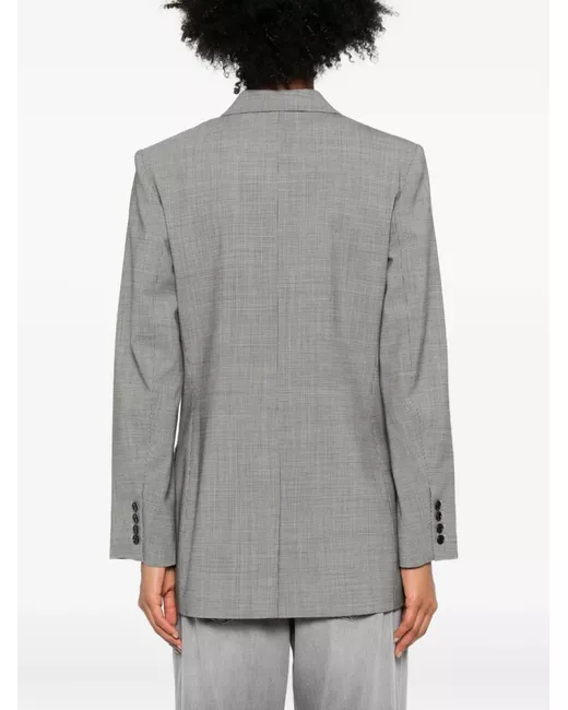 grey houndstooth check pattern double-breasted closure four buttons notched lapels long sleeves
