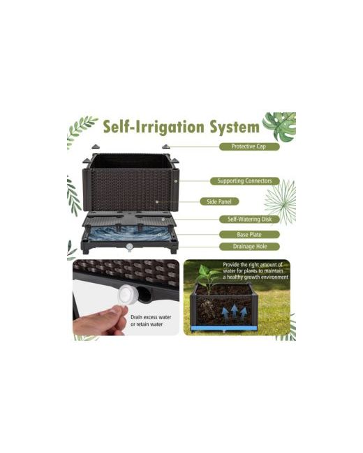 A Perfect Planting Helper to Make Your Garden Clean and Tidy! Our raised garden bed kit is designed with 8 elevated legs and 2 planter boxes, allowing you to freely combine the garden boxes as you desire. It is made of premium Pp materials that are Sturdy and weatherproof for long-lasting indoor and outdoor uses. More importantly, the elevated planter kit requires no tools for effortless assembly, just insert walls into the base plate and insert the columns along grooves of sideboards, and you can choose whether to install the elevated legs for different purposes. And it is equipped with a self-watering disk, a water storage box, and drainage holes for self-priming irrigation, allowing roots to aerate while having moisture nearby.Features:Self-watering disk help plants absorb water and nutrition completely Water storage plate offers space for reserve excessive waterElevated design can save spaces for planting
