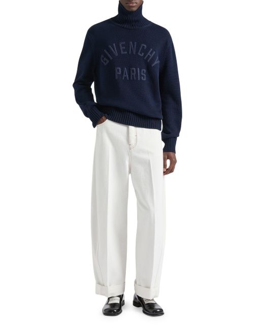 Givenchy Paris sweater in cotton. Long-sleeved sweater in cotton Turtleneck Givenchy Paris signature embroidered on the front Composition: 100% cotton Made in Italy. Lsd Rtw - Givenchy Rtw > Givenchy > Saks Fifth Avenue. Givenchy. Color: Dark Navy. Size: Large.