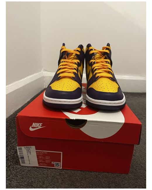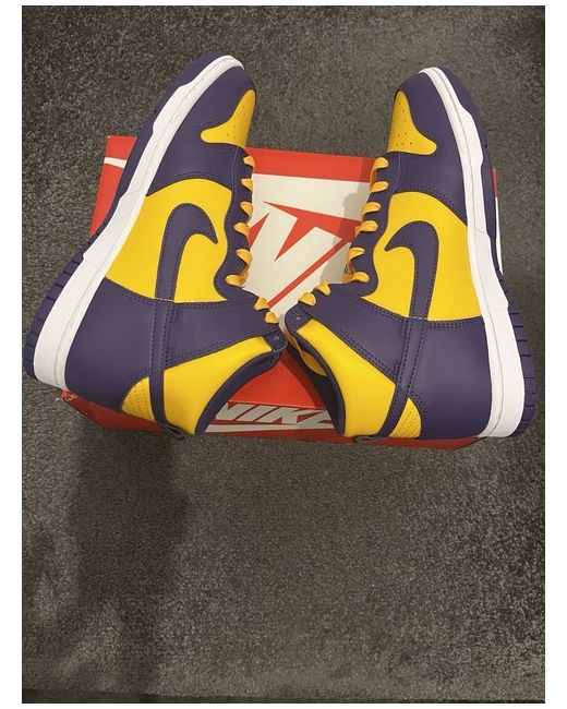Nike Dunk High in Purple and Yellow is a stylish unisex trainer. Brand new with box bought from reputable UK retailer but not had a chance to wear them and they are no longer needed.