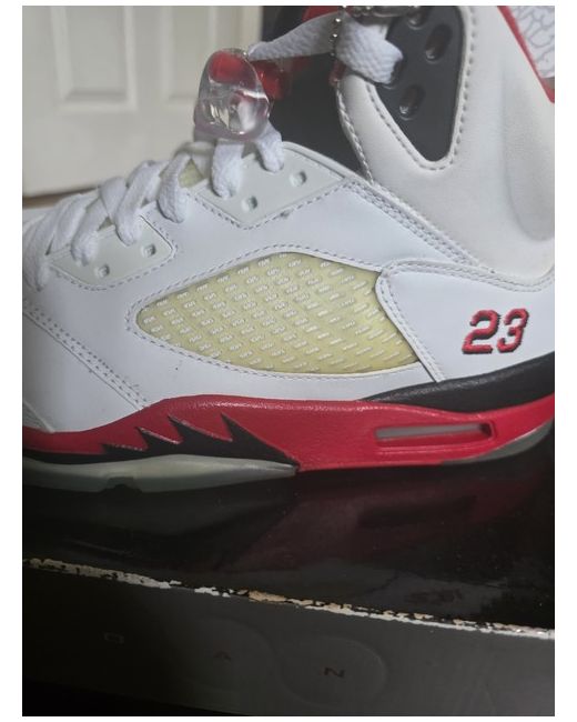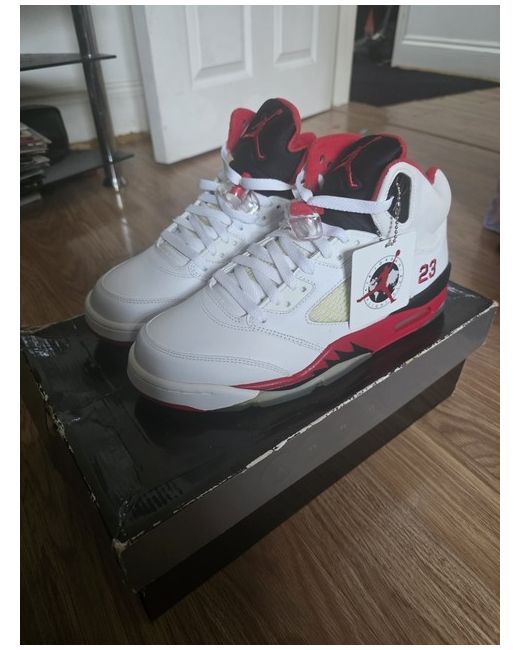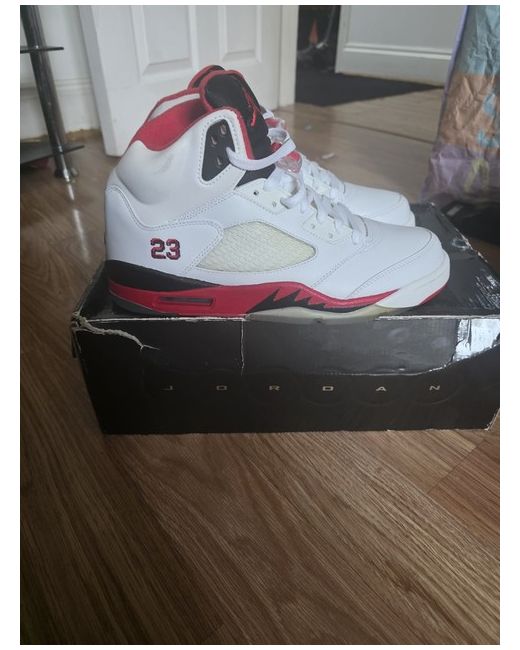Jordan 5 Retro 2006 fire red black tounge UK Size 9 brand new unworn damaged box see pictures mesh on side is yellowing see pictures I can send more pictures if needed hence price