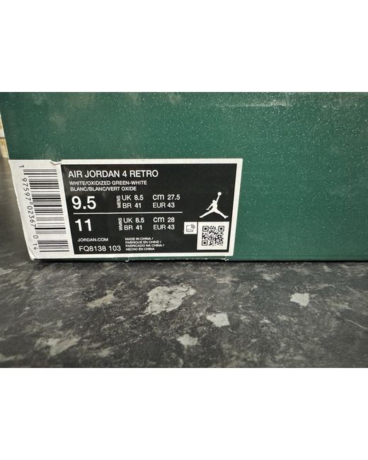 The Jordan 4 Retro Oxidized Green is a stylish trainer designed for men, featuring a green colourway that adds a unique twist to the classic sneaker style. With a UK shoe size of 8.5 and a US shoe size of 9.5, this retro model from Jordan is a must-have for sneaker enthusiasts looking for a standout addition to their collection. Perfect for casual wear or sports, these trainers are a versatile choice for those who appreciate quality and style.