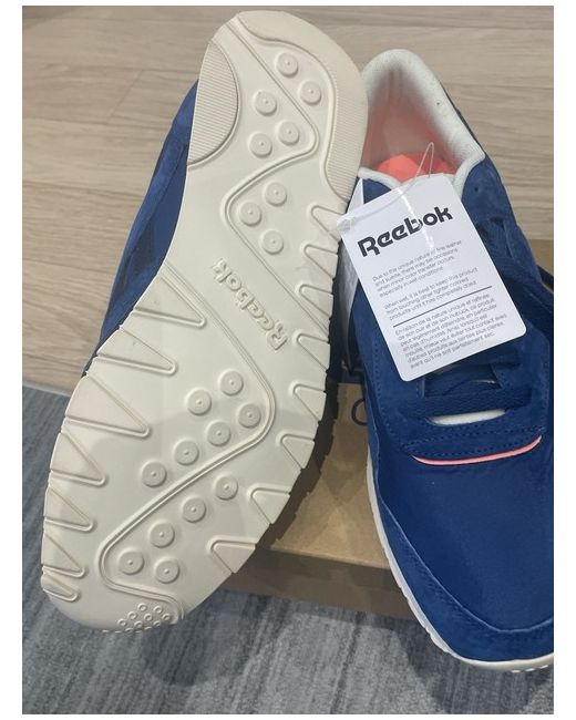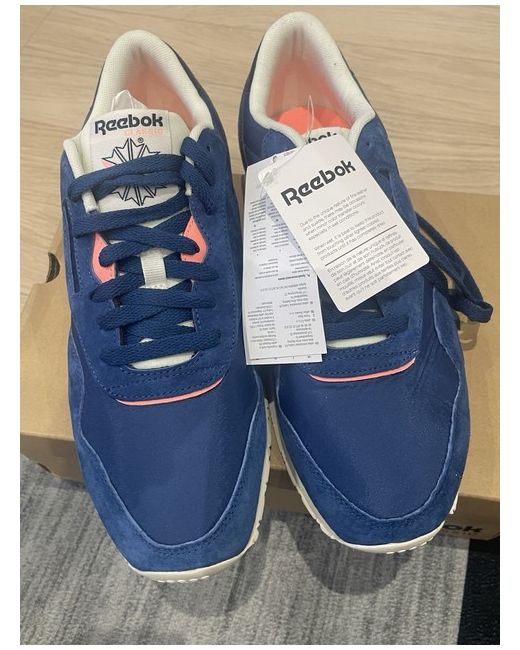 beautiful pair of nylon reebok classics trainers in blue with a hint of pink. Brand new in box size 9.