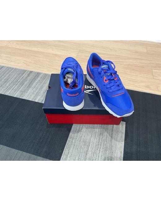 Brand new pair of reebok nylon classics in a lovely medium blue with blood orange decals and stripes. Size 9