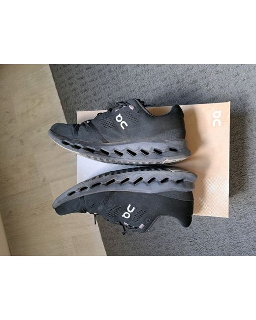 The ON CLOUD SURFERS in size 9.5 are stylish and versatile men's trainers perfect for casual occasions during the summer season. These low-top sneakers feature a sleek lace-up closure and a black colour scheme, making them a classic choice for everyday wear. The rubber outsole provides durability and comfort, while the standard shoe width ensures a comfortable fit. Made by the brand ON, these trainers are a part of the Cloud product line, offering both quality and style for the modern man.