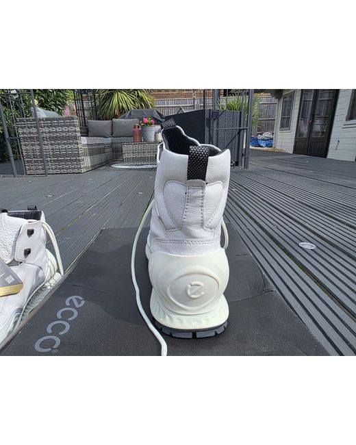 Ecco Exostrike high top trainers. Brand new in box with tags never been worn. They were a gift a while ago but not really my style being white. They are extremely well made and if familiar with ecco shoes you will know how well they are made. I always buy ecco hiking boots for their quality , being waterproof and comfort. They are size 45 euro which is 10.5 to 11 UK and 11 to 11.5 usa.