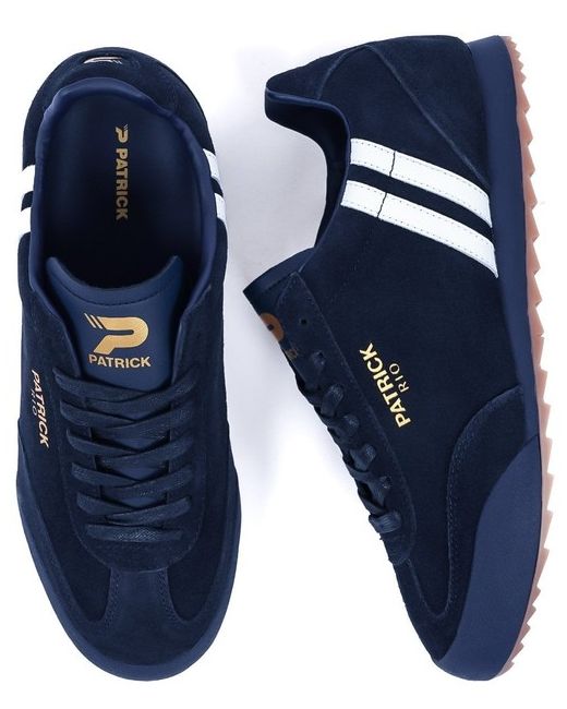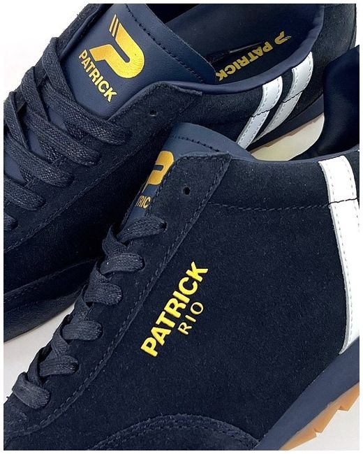 Exclusive reissue of the classic Patrick Rio Trainer in Navy Blue premium suede. Why Buy From Us?.