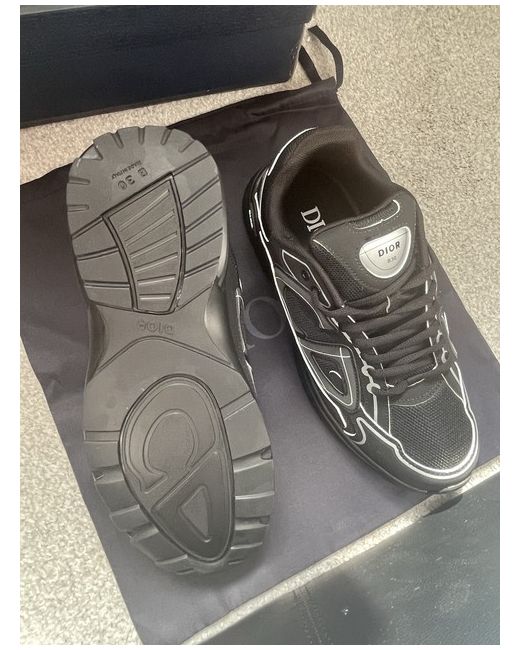 The Dior B30 Black Mesh trainers in UK size 9 are a stylish and comfortable choice for casual wear. These lace-up sneakers feature a low top design with a rubber outsole and reflective accents for added flair. Made in Italy with a mesh upper and foam insole, these Dior B30 trainers are perfect for everyday use and are sure to make a statement.