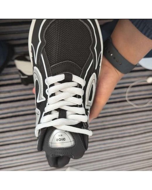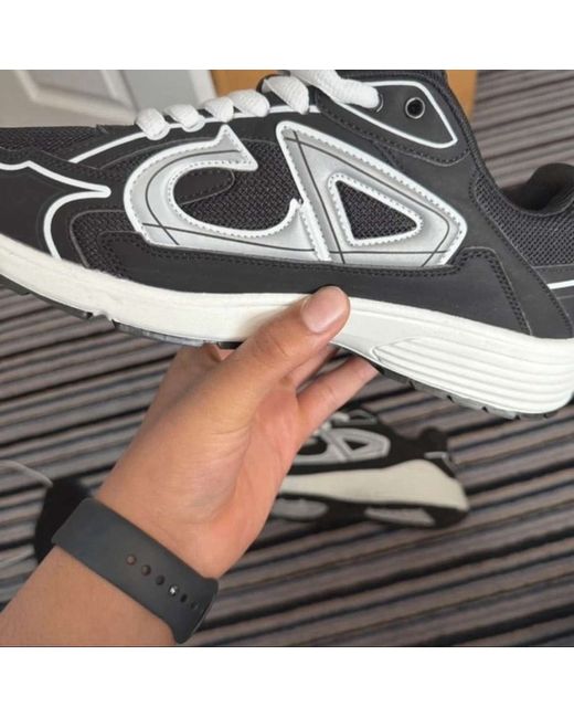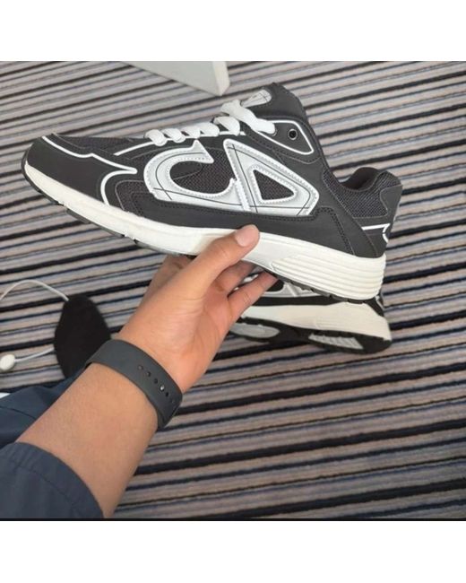 The Dior B30 Men's trainers are a stylish and versatile option for casual wear. Made in Italy with a durable rubber outsole, these black sneakers feature a low top shaft style, lace-up closure, and reflective accents for added flair. The mesh upper and foam insole provide comfort and breathability, making them ideal for springtime activities. With a nod to the luxury brand Dior, these trainers combine fashion and function for the modern man.
