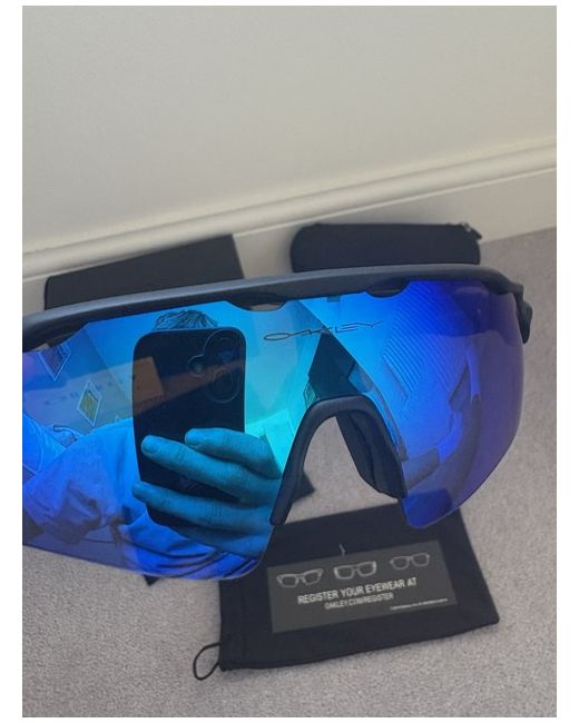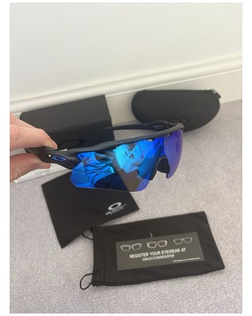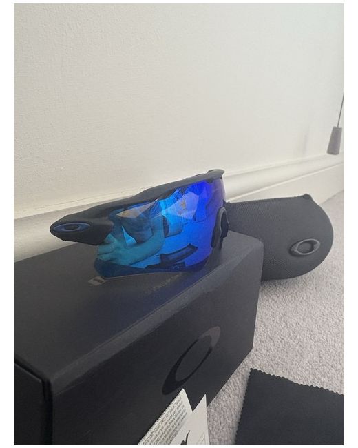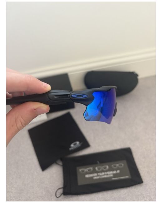 The Oakley Men's Sunglasses are a stylish and functional accessory for men. Featuring tinted polycarbonate lenses with UV400 protection, these wrap-around sunglasses are perfect for outdoor activities. The sleek design, including a black plastic frame, exudes a modern and sporty look. The Oakley Radar Path model combines cutting-edge technology with a fashionable style, making it a popular choice among men looking for both style and practicality in their sunglasses.