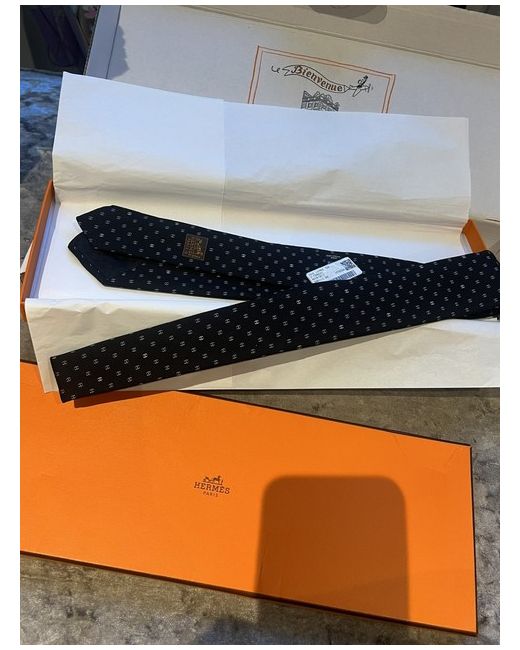 Beautiful Hermes tie brand-new with gift box Spike Lourdes 7cm H tonneaij Noir / Gris Brand new