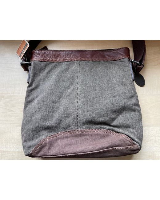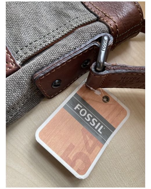 A man’s Fossil bag. The bag is sold as new. . Collection Name - Trail Shape - Rectangular Main Colour - Grey/Brown Material - Leather & Canvas Length - 35 cm Height - 35 cm Shoulder Strap - adjustable Carrying Handle - No Main section fixing - Magnetic Open & Close - Zip Outside pockets - 1 at front Inside pockets - 3 Additional features - Metal Fossil fob