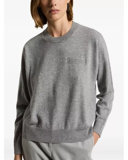 grey crew neck long sleeves straight hem ribbed hem ribbed cuffs