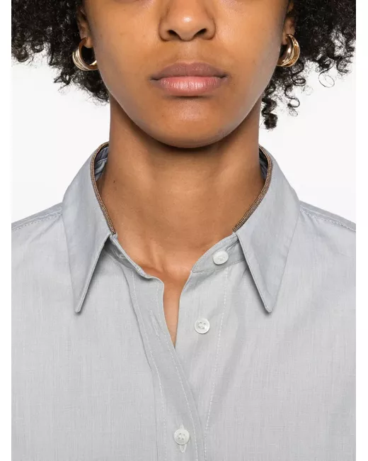 Monili-Trim Striped Cotton Poplin Button-Down Shirt