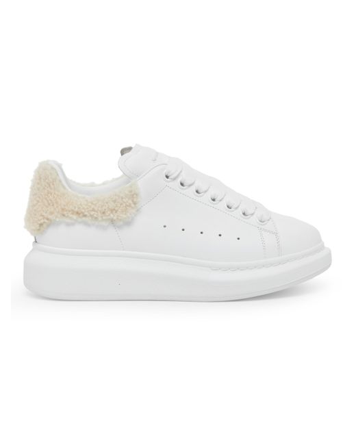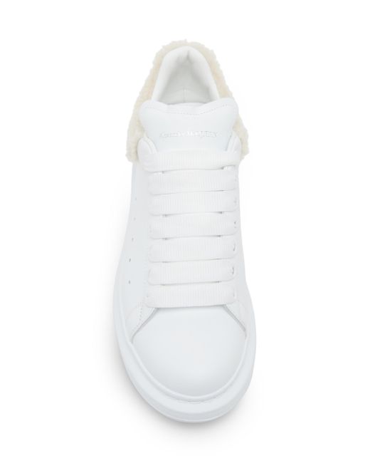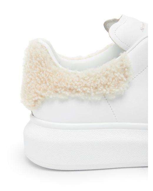Crafted of leather, the McQueen sneakers feature a low-top silhouette with a platform sole. This pair is trimmed with shearling at the heel and features the brand logo in silvertone foil at the tongue. Round toe Lace-up style Leatherupper Shearling trim Rubber sole Fur type: dyed calf shearling Fur origin: Italy Made in Italy ABOUT THE BRAND Visionary designer Lee Alexander McQueen launched his brand in 1992, which quickly became synonymous with cutting-edge, avant-garde design. Creative Director Seán McGirr has continued the designer's legacy, bringing precision craftsmanship and a feminine vision to the label's signature edge. Women's Shoes - Alexander Mcqueen Shoes > Mcqueen > Saks Fifth Avenue. McQueen. Color: White Beige. Size: 6.