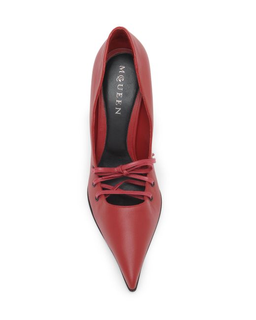 Crafted of leather, the Corset pumps from McQueen feature a strappy upper finished with a bow and corset-inspired detailing. This pair sits on a 4-inch stiletto heel. Point toe Slips on Leather upper Leather trim Made in Italy SIZE Heel: about 4" ( 100mm) ABOUT THE BRAND Visionary designer Lee Alexander McQueen launched his brand in 1992, which quickly became synonymous with cutting-edge, avant-garde design. Creative Director Seán McGirr has continued the designer's legacy, bringing precision craftsmanship and a feminine vision to the label's signature edge. Women's Shoes - Alexander Mcqueen Shoes > Mcqueen > Saks Fifth Avenue. McQueen. Color: Crimson. Size: 6.
