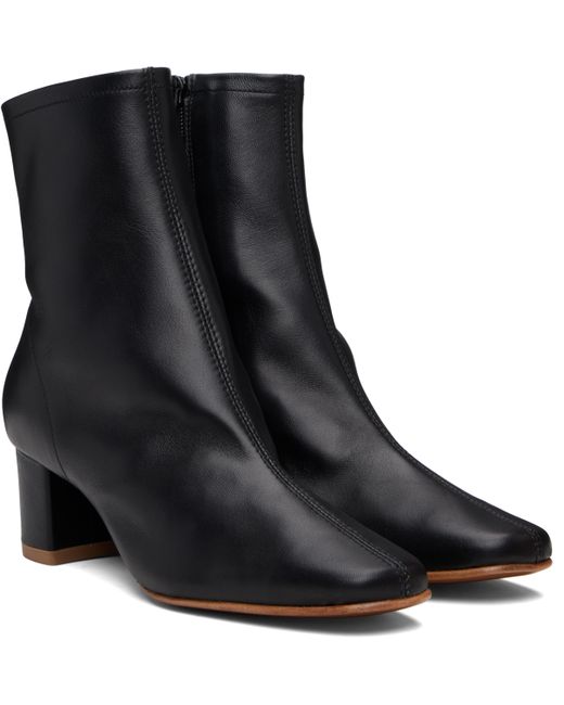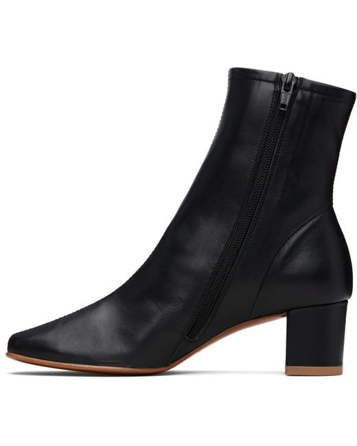 Ankle-high buffed lambskin boots. · Square toe · Zip closure at inner side · Covered block heel with rubber injection · Leather sole · Heel: H2 Supplier color: Black