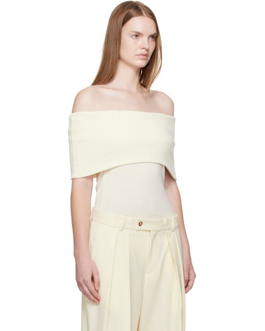 Rib-knit cotton top. · Certified OEKO-TEX® Standard 100 · Off-the-shoulder construction · Foldover neck Supplier color: Off white