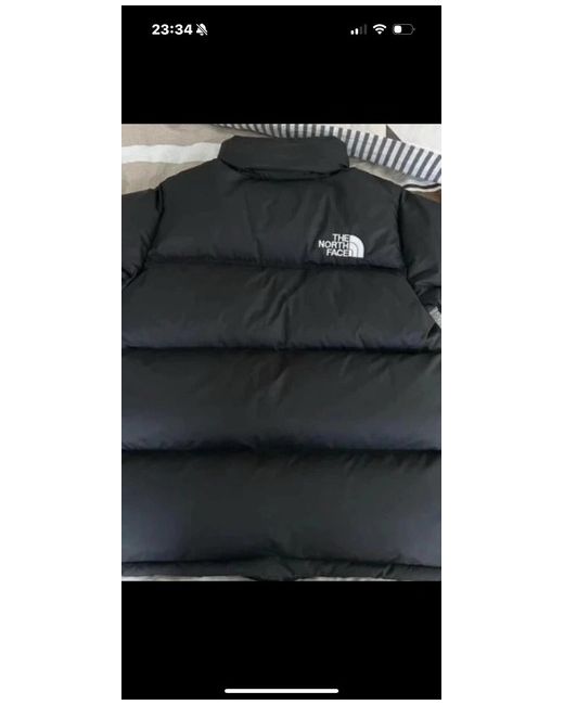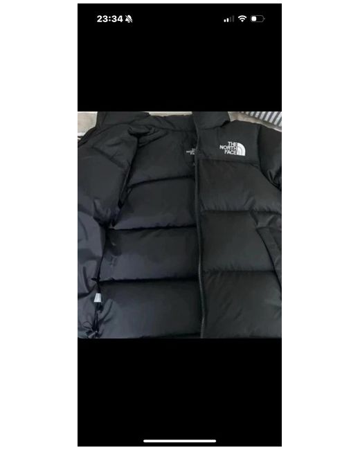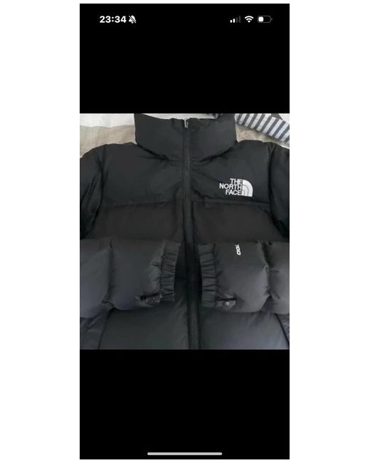 The North Face size small jacket is a stylish mid-length polyester puffer jacket in classic black with the brand's iconic logo accents. This casual jacket is perfect for winter outdoor activities like walking, thanks to its regular fit and machine washable design. Stay warm and fashionable with this sleek and practical winter essential from The North Face.