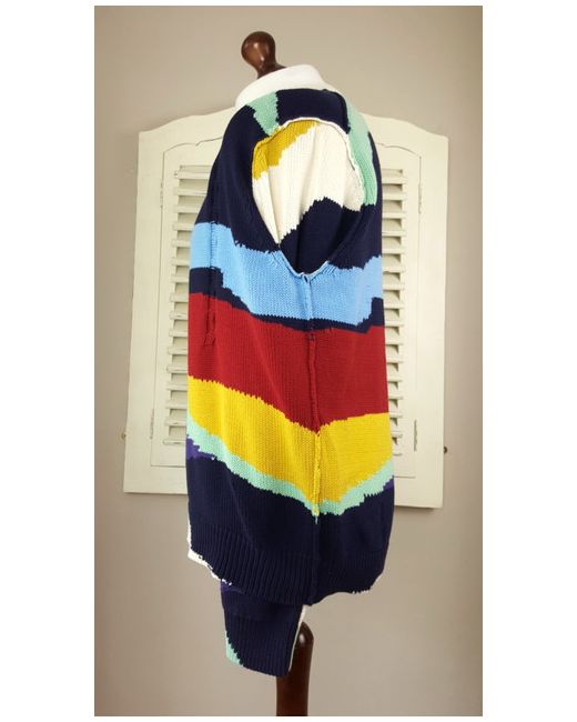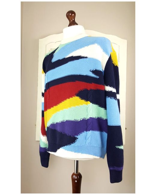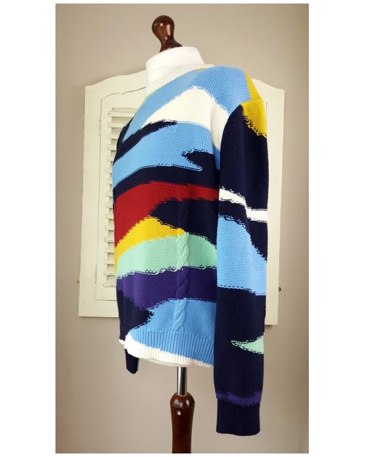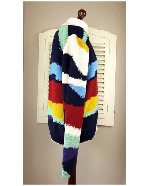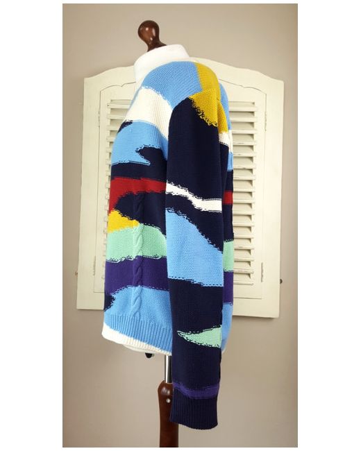 The knit is mostly garter stitch with areas of cable knit and the overall effect is a rough and rustic look. An iconic jumper that screams Paul Smith. Paul Smith Abstract Landscape Cable Knit Sweater (L).