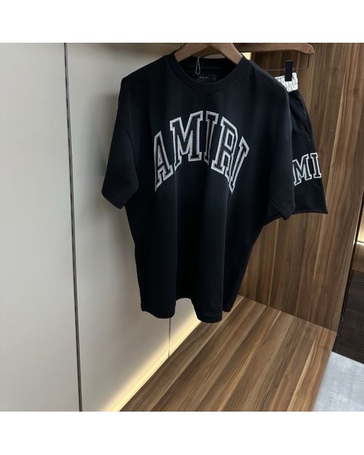 The Amiri Men's T-Shirt in medium size is a stylish and comfortable piece perfect for the summer season. Made from cotton jersey fabric, this black T-shirt features a round neckline, short sleeves, and a regular fit. The design includes a logo accent, making it a trendy choice for men who appreciate designer clothing. Machine washable for easy care, this 2020-2029 manufactured T-shirt is a versatile addition to any wardrobe.