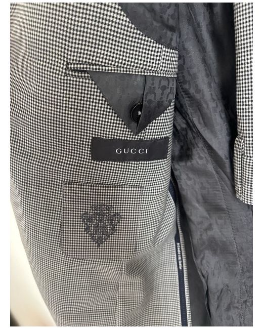 Men’s Gucci suit from the Alessandro Michele years (I believe). Unworn still with tags attached. Size 48, medium. Has an amazing fine gingham pattern which appears grey from a distance but adds a pop of personality up close. Trousers measure at 32 inch waist and 31 inch leg.